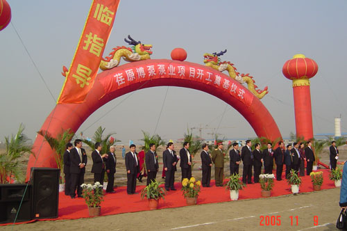 新聞中心 2005年11月9日,荏原博泵有限公司開工奠基儀式在淄博高新技術開發(fā)區(qū)隆重舉行。這標志著荏原博泵泵業(yè)有限公司的建設工作已經(jīng)全面啟動,預示著荏原博泵泵業(yè)有限公司將穩(wěn)健地邁上蓬勃發(fā)展的道路。
